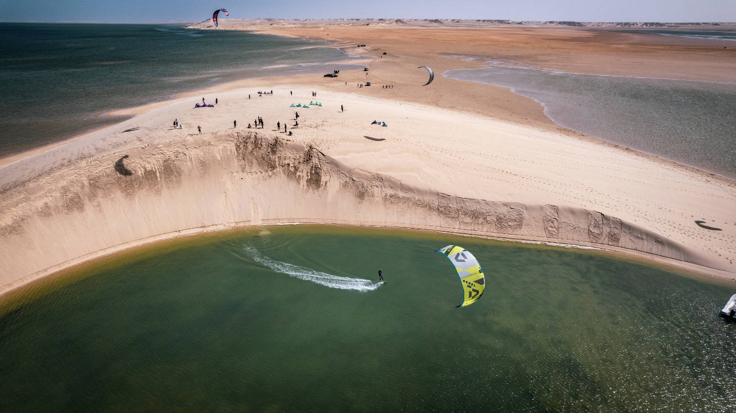 Située entre l’océan Atlantique et le désert du Sahara, la lagune de Dakhla est un véritable joyau naturel, classée parmi les meilleures destinations mondiales pour le kitesurf, le wingfoil et le surfoil au Maroc. Grâce à ses vents réguliers, ses eaux peu profondes et son climat agréable toute l’année, Dakhla est d’ailleurs le seul endroit au monde où rider peut se faire du petit matin jusqu’au sunset. Les vents sont, en effet, constants, comme nulle part ailleurs. Pour les passionnés de glisse, c’est une vraie chance !