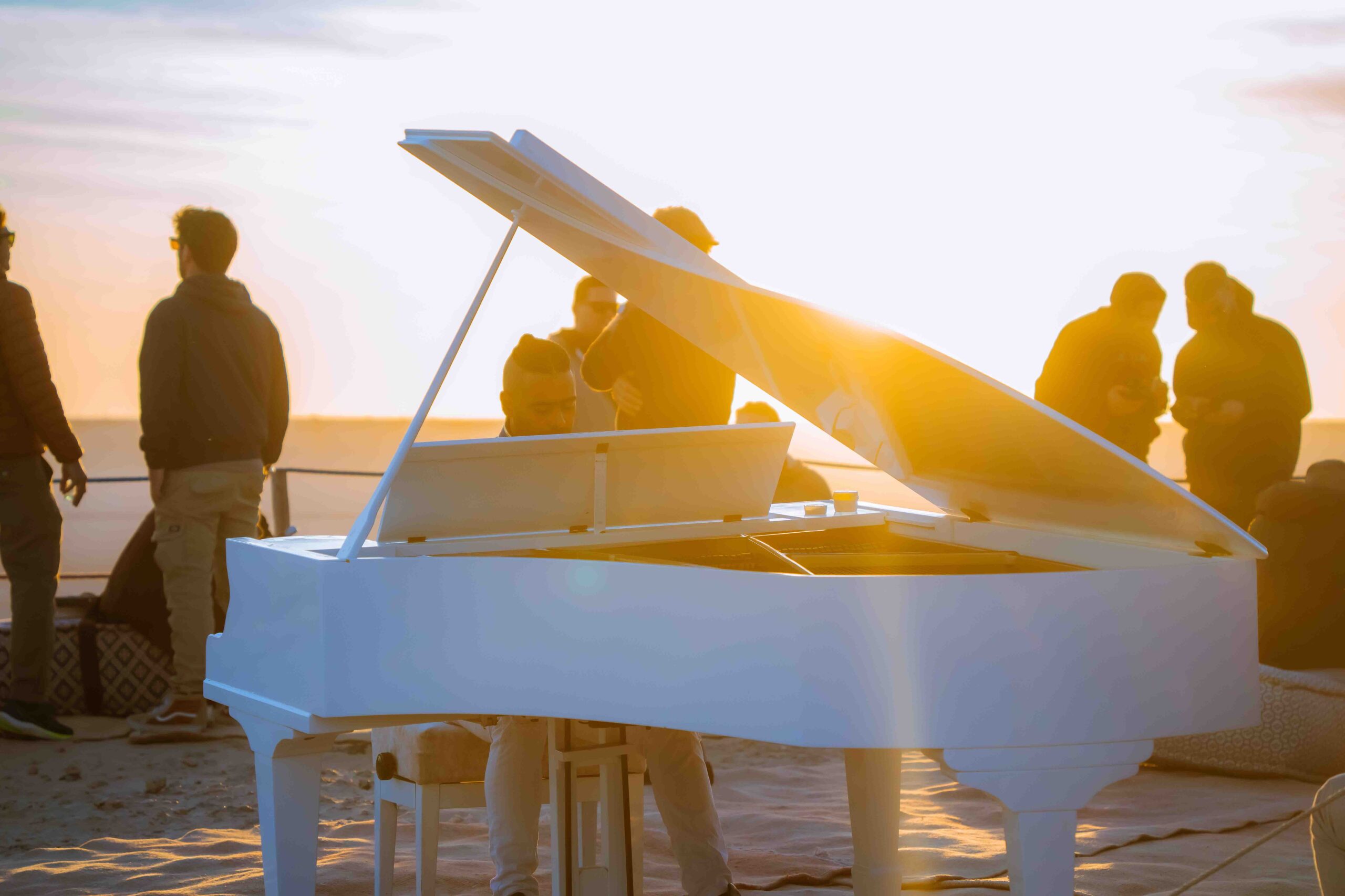 Au cœur des Dunes de Dakhla, le Breezefest incarne l’essence même de l’hospitalité saharienne : l’art de recevoir, de célébrer et de créer des souvenirs inoubliables. Cette soirée d’exception débute dans la douceur dorée du coucher de soleil, face aux dunes majestueuses. Tandis que la lumière décline, un pianiste en live accompagne ce moment suspendu, offrant une expérience musicale intime en pleine nature.